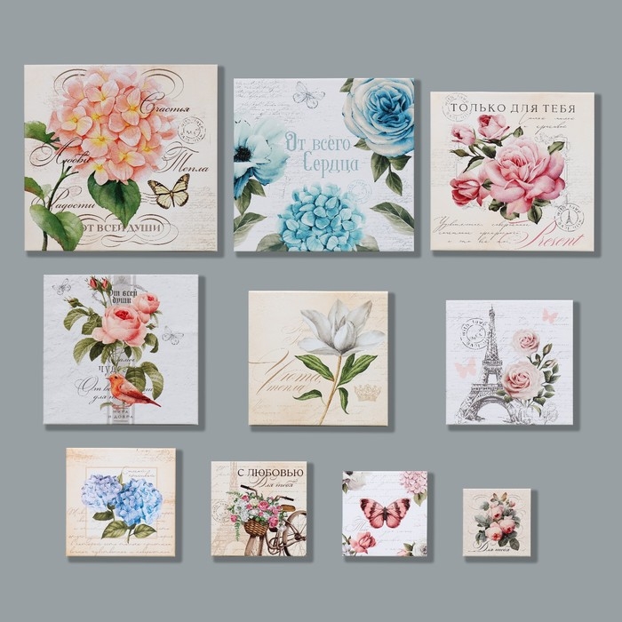 Набор коробок 10 в 1, упаковка подарочная, «Шебби», 10.2 х 10.2 х 6‒28.2 х 28.2 х 15 см