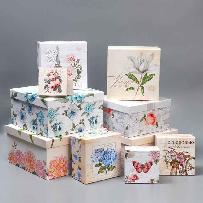 Набор коробок 10 в 1, упаковка подарочная, «Нежный», 12 х 7 х 4 - 32.5 х 20 х 12.5 см