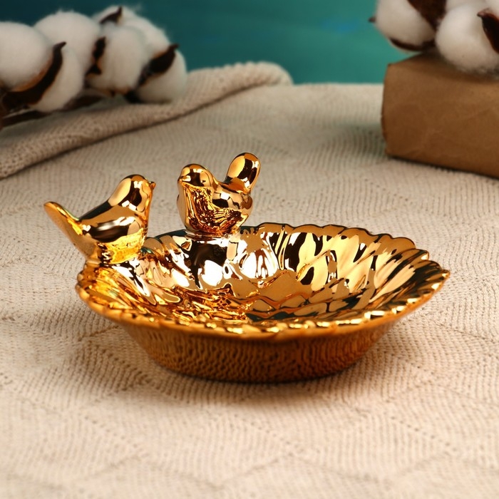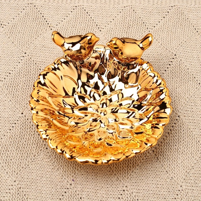 Подставка для мелочей "Пташки" 13х13х5см, золото