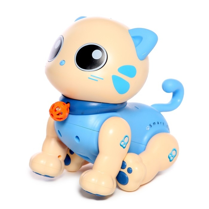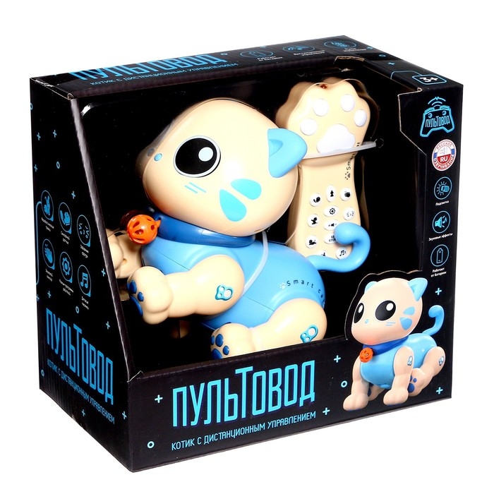 Робот кот «Пультовод» ZHORYA, на пульте управления, интерактивный: сенсорный, звук, свет, на батарейках, на русском языке, синий