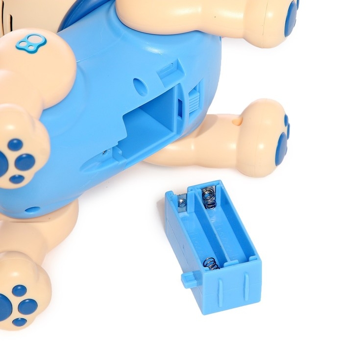 Робот собака Charlie IQ BOT, на пульте управления, интерактивный: звук, свет, танцующий, музыкальный, на батарейках, на русском языке, бело-голубой