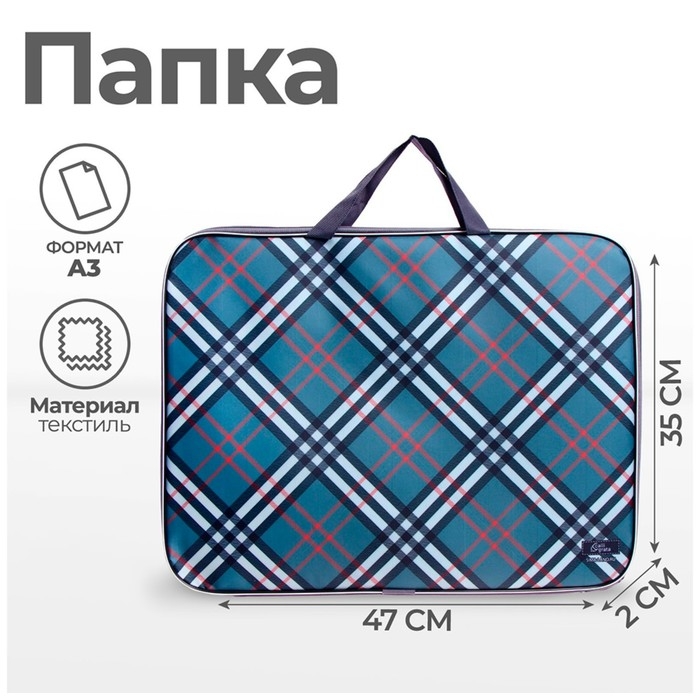 Папка для чертежей и рисунков А3, 470 х 350 х 20 мм, с ручками, текстильная, Calligrata "Клетка"