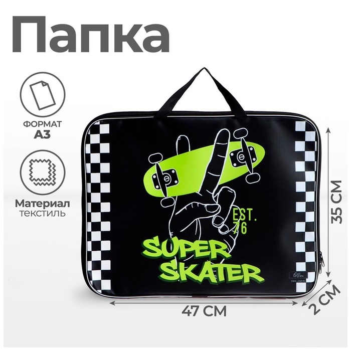 Папка для чертежей и рисунков А3, 470 х 350 х 20 мм, с ручками, текстильная, Calligrata "Скейт"