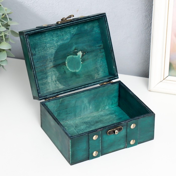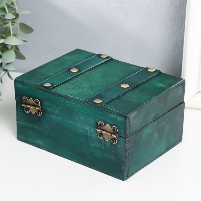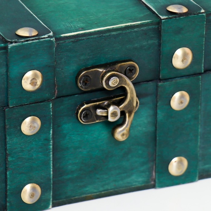 Шкатулка дерево сундучок "Алиенора" с заклёпками, плоская, зелёный 15х11,5х7,5 см