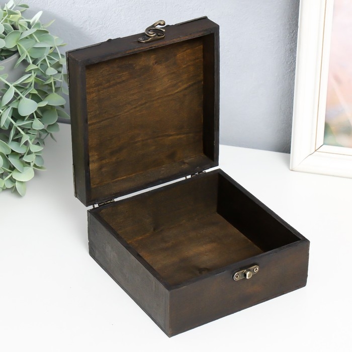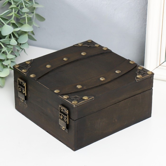 Шкатулка дерево сундучок "Мира" с заклёпками, коричневый 15х15х7,5 см