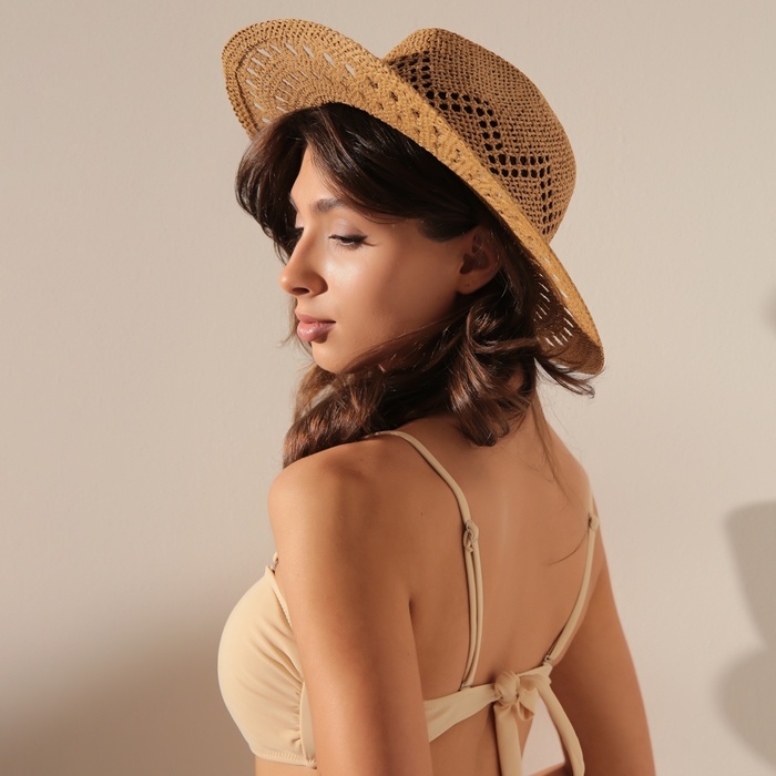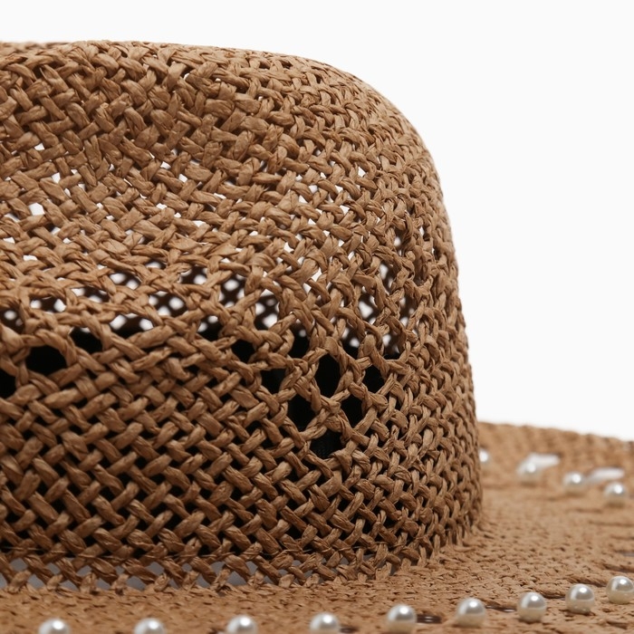 Шляпа женская с декором MINAKU цвет коричневый, р-р 56-58
