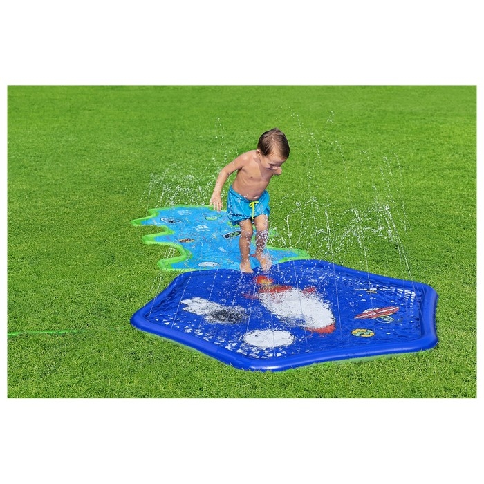 Надувной бассейн с разбрызгивателем предназначен для размещения на придомовом участке. Подключается к садовому шлангу.