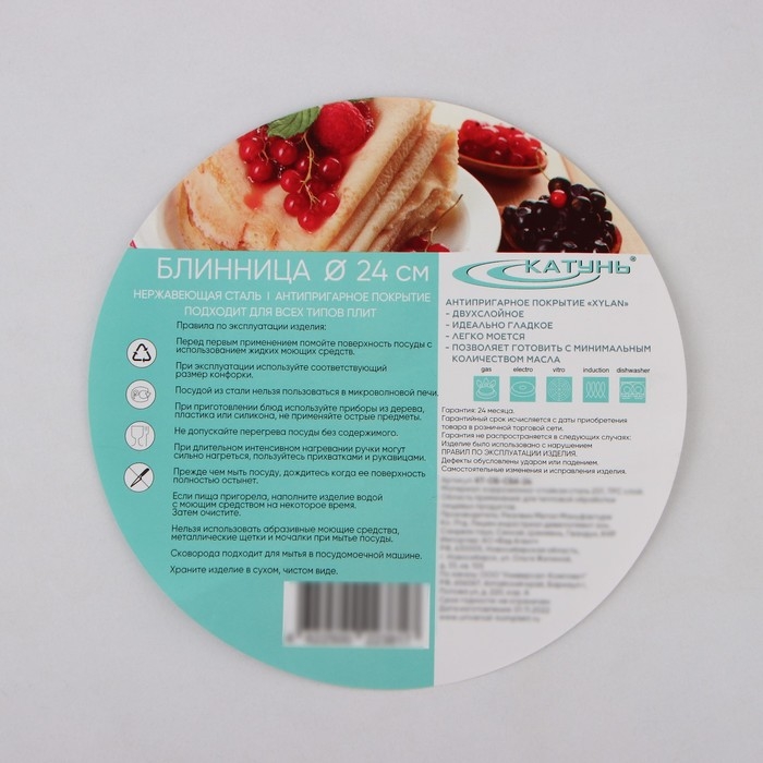 Блинница «Общепит», d=24 см, толщина стенок 0,6 мм, дно ТРС 3,5 мм, индукция