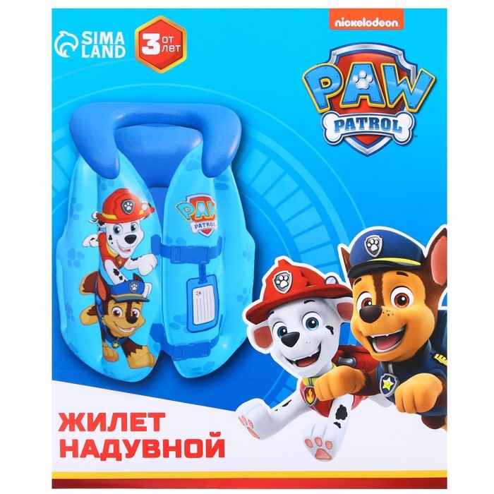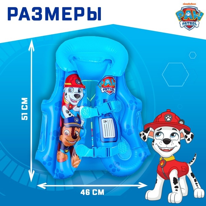 Жилет надувной для плавания, детский, Щенячий патруль, цвет голубой