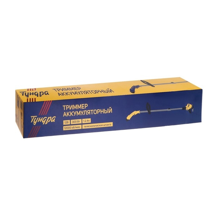 Триммер аккумуляторный ТУНДРА, 12 В, 300 Вт, 1.2 Ач, 12000 об/мин, телескопическая штанга