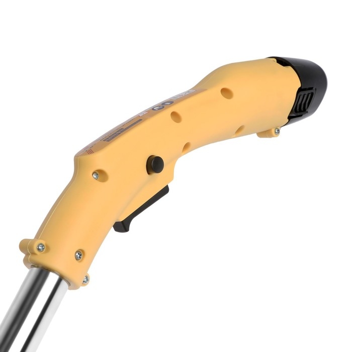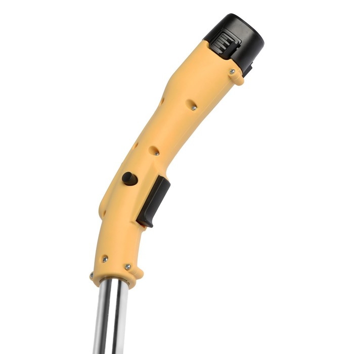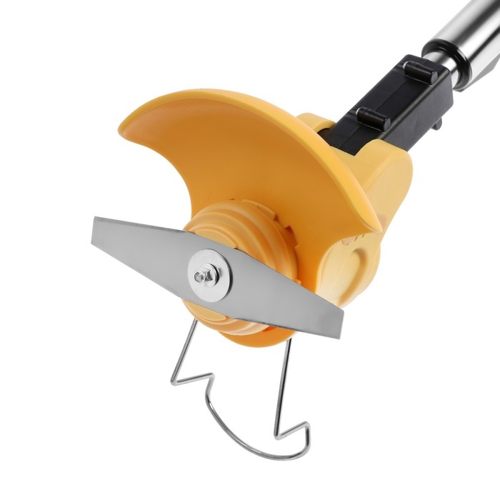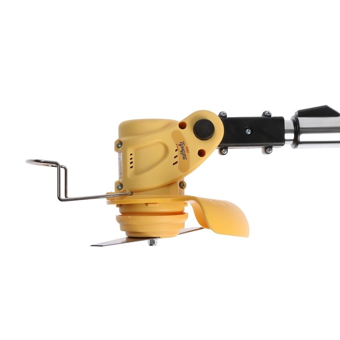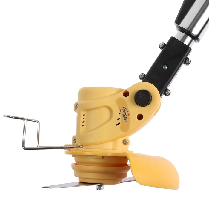 Модель оснащена телескопической штангой, благодаря которой триммер удобно регулировать под рост человека. Специальная поворотная головка позволяет регулировать наклон скоса во время работы.