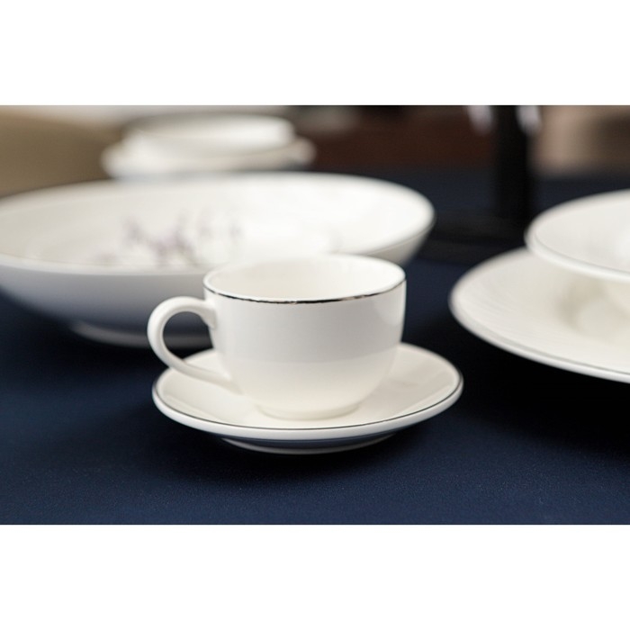 Посуда Magistro серии La Perle покорит лаконичным дизайном и молочной белизной натурального фарфора. Современная форма предметов подчеркнута элегантной серебряной окантовкой. Изделия из линейки La Perle можно использовать как в повседневной, так и в праздничной сервировке. Посуда станет чудесным подарком и дополнит коллекцию столового семейного фарфора.