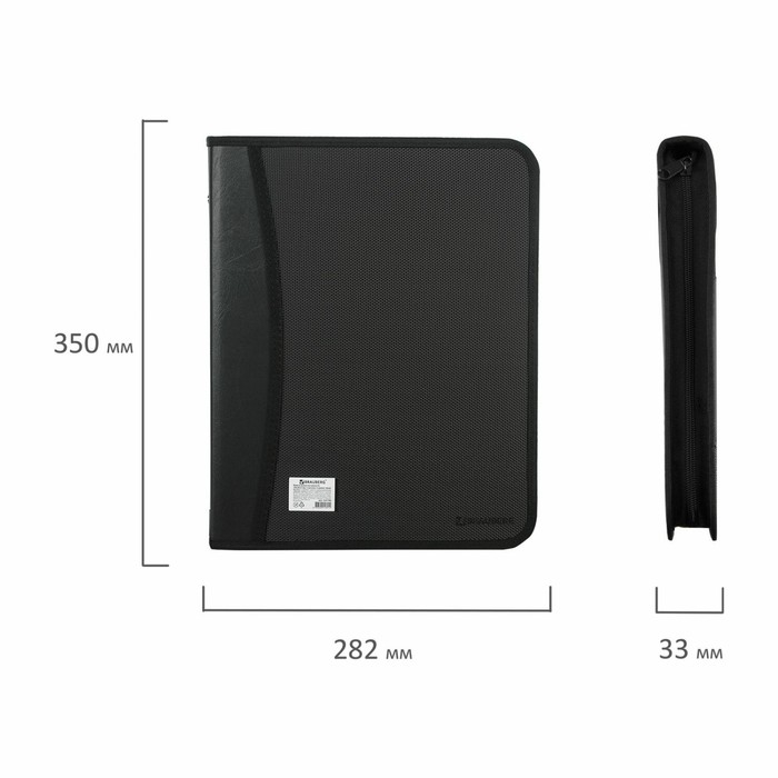 Папка на молнии Calligrata предназначена для переноски документов, а также их хранения. Незаменима в работе и учебе, в командировках, деловых поездках, путешествиях. Изготовлена из прочного черного полипропилена толщиной 0,9 мм с фактурой "бисер". Формат А4 (350х282 мм). Имеет два внутренних отделения и четыре кармана. Надежный замок-молния защищает документы от механических повреждений, а также пыли и влаги. Цвет молнии - черный. Важные документы и ценные бумаги всегда требуют повышенного внимания и деликатного обращения. Их безопасность и опрятный внешний вид обеспечит папка Calligrata. Организовать деятельность сотрудников, нацеленную на высокий результат, помогут товары нашего интернет-магазина!