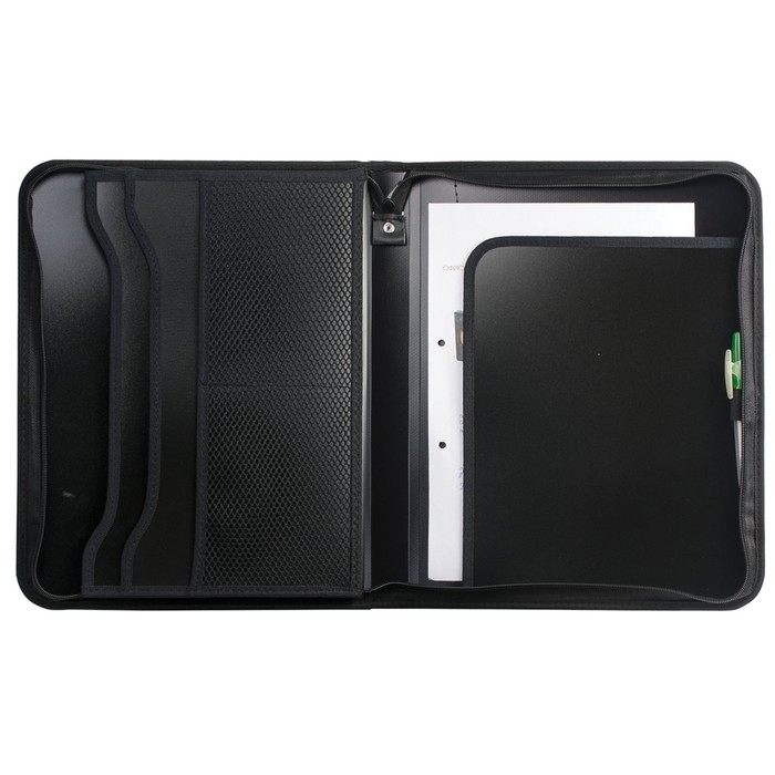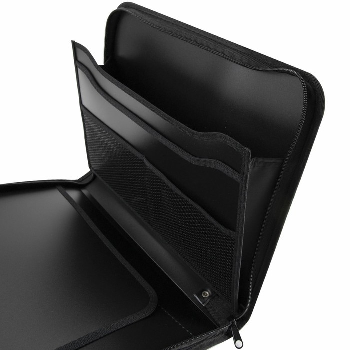 Папка на молнии А4, 2 отделения, Calligrata, 350 х 282 х 33 мм, пластик, 4 кармана, бизнес-класс, черная