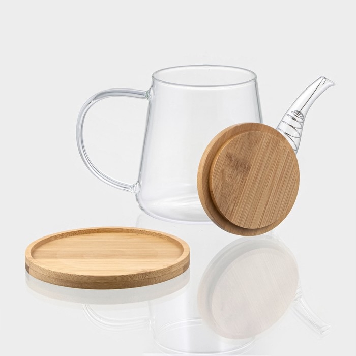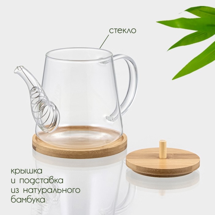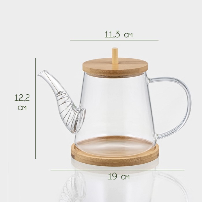 Чайник заварочный стеклянный с бамбуковой крышкой и металлическим фильтром BellaTenero «Бамбук», 600 мл, 19×11,3×12,2 см