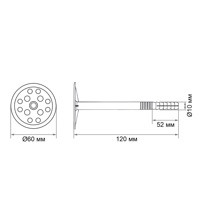 Дюбель "ТУНДРА" предназначен для крепления мягких и твёрдых изоляционных материалов в форме плит и полос, таких, как каменная шерсть, стекловата, полистирол, полиуретан, пенопласт, плита из древесной шерсти к основанию из бетона, лёгкого бетона, полнотелых и пустотелых кирпичей, пенобетона.