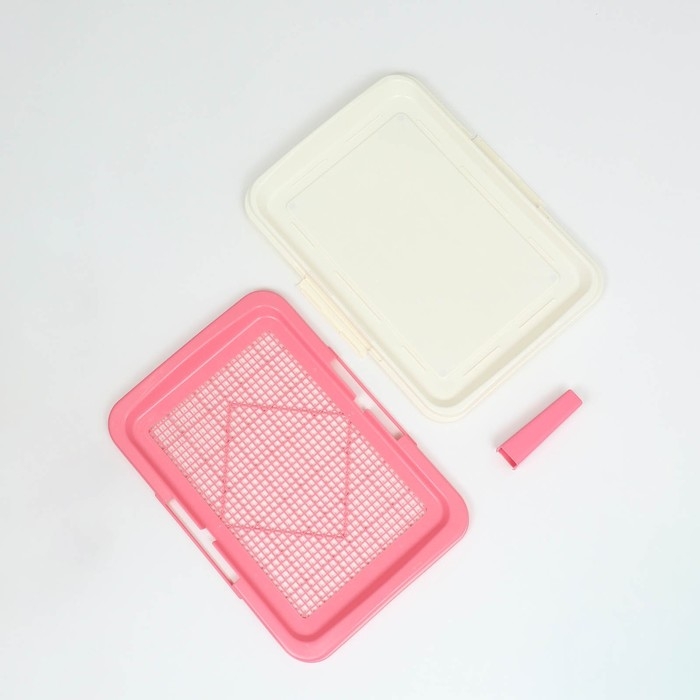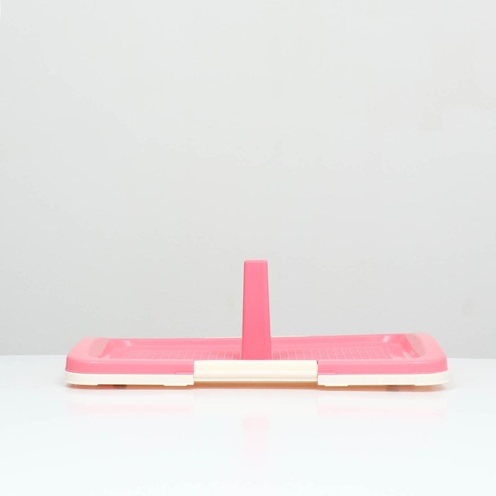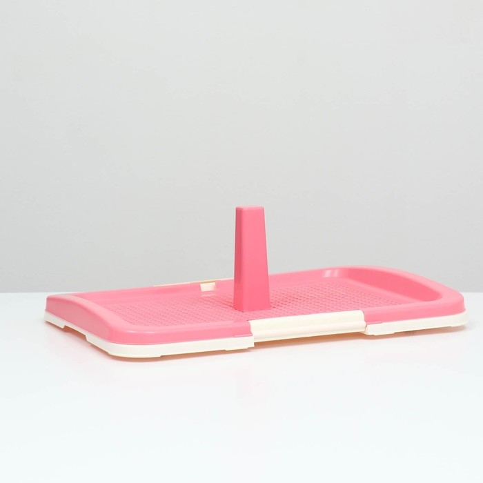 Туалет для собак 46,5 х 35,5 х 5,5 см, со стенкой, съёмной решеткой и столбиком, розовый