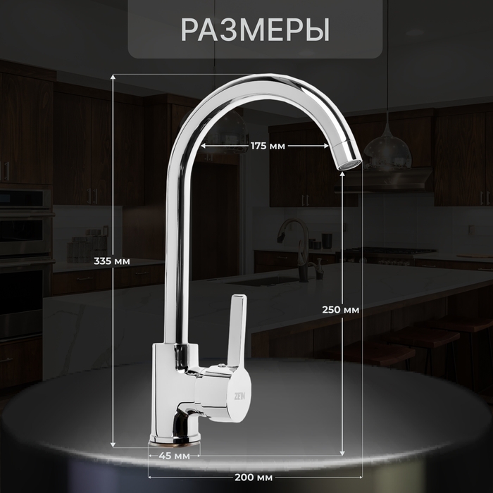 Смеситель для кухни ZEIN Z7213, однорычажный, картридж керамика 40 мм, латунь, хром