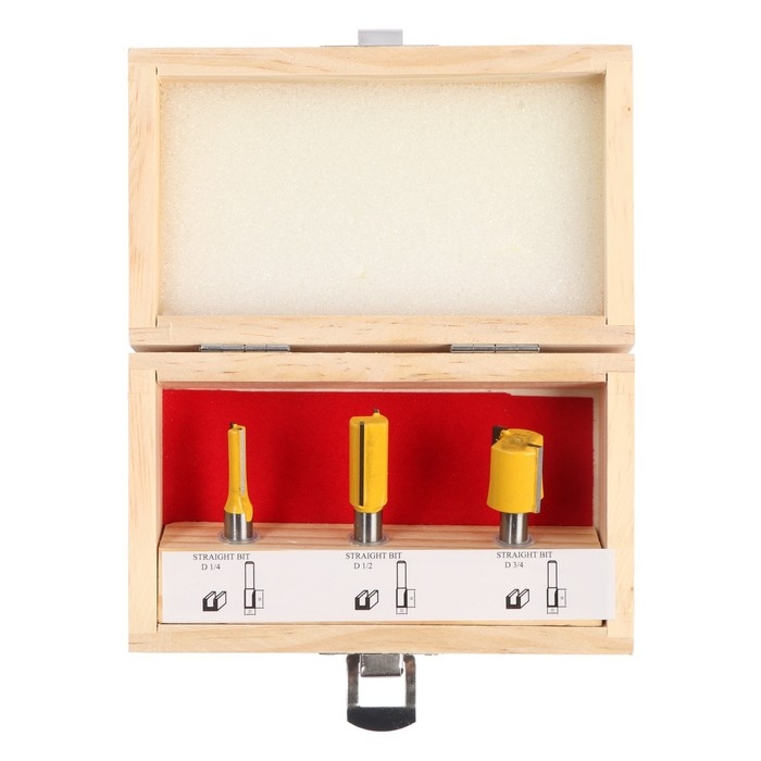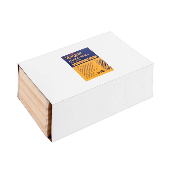 Набор фрез по дереву ТУНДРА, деревянный ящик, хвостовик 8 мм, 3 шт.