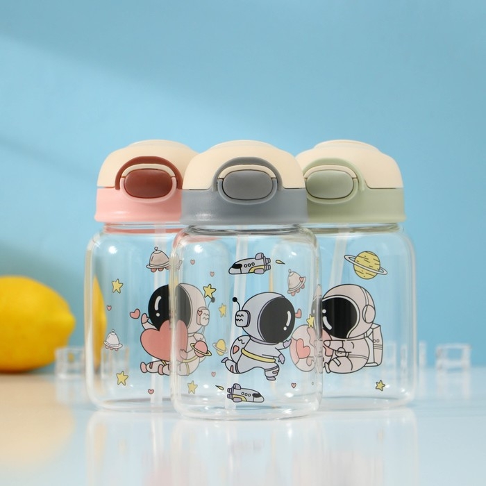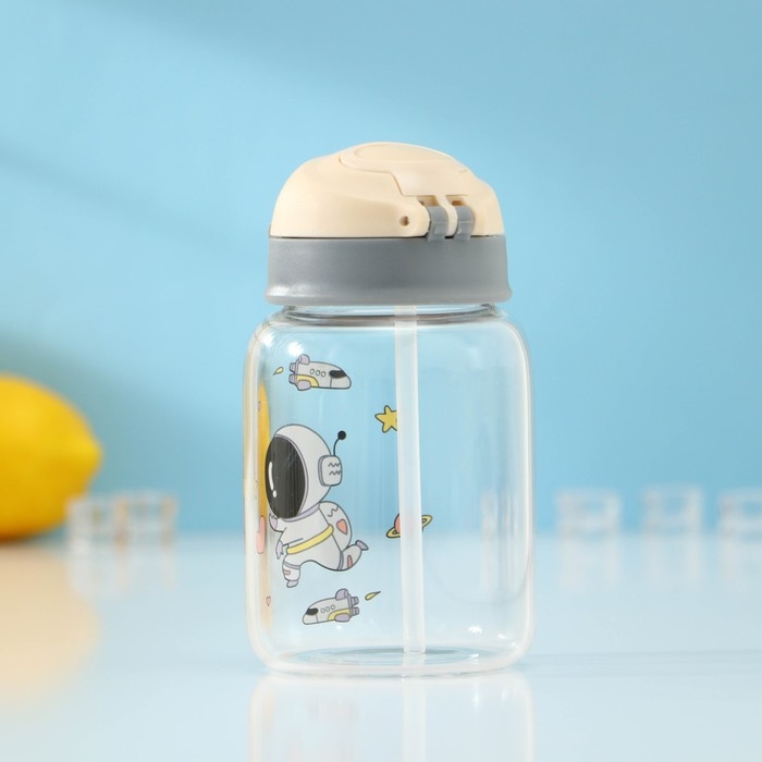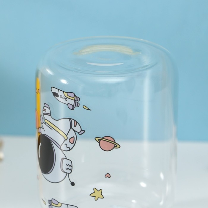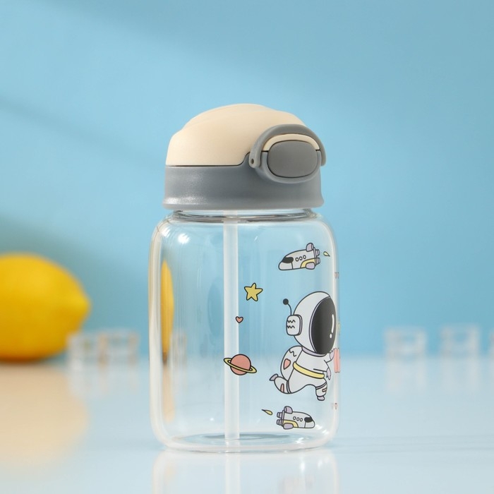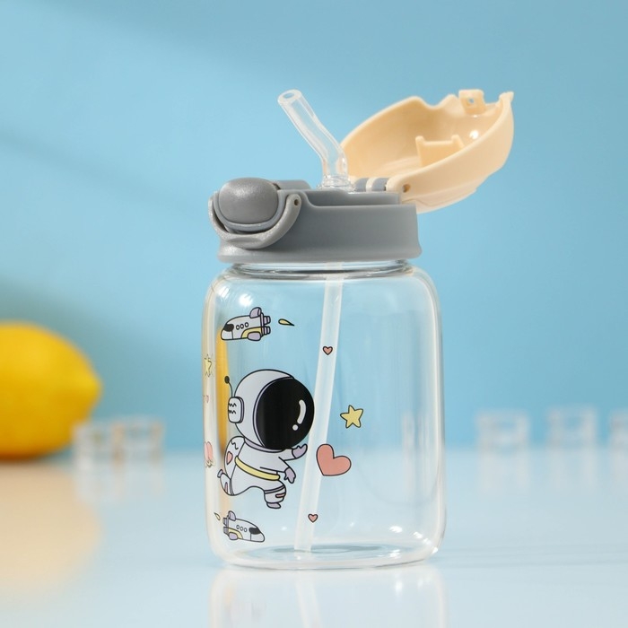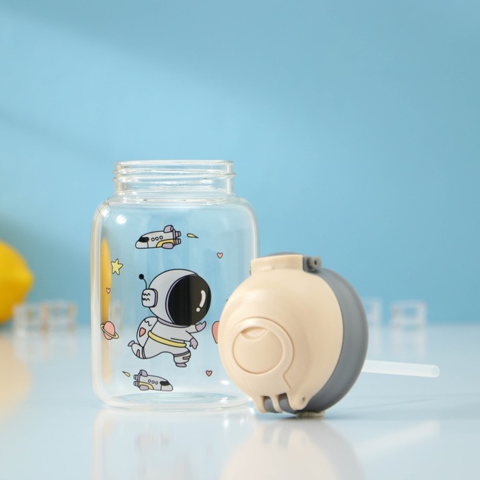 Бутылка для воды стеклянная «Космонавты», 450 мл, 8,2×15 см, цвет МИКС