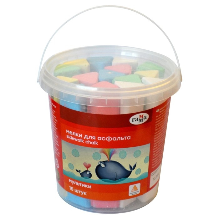 Мелки для асфальта Гамма "Мультики" цветные, 15 штук, треугольные, в пластиковом ведре
