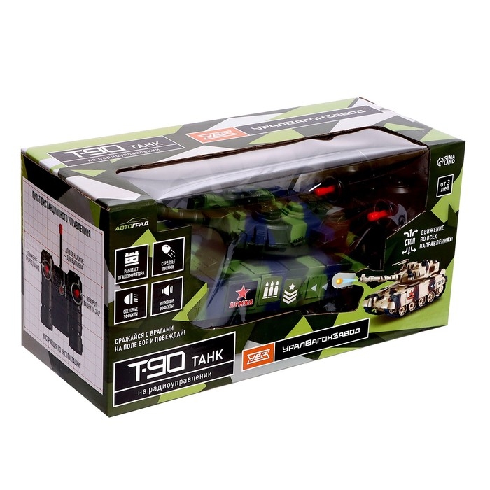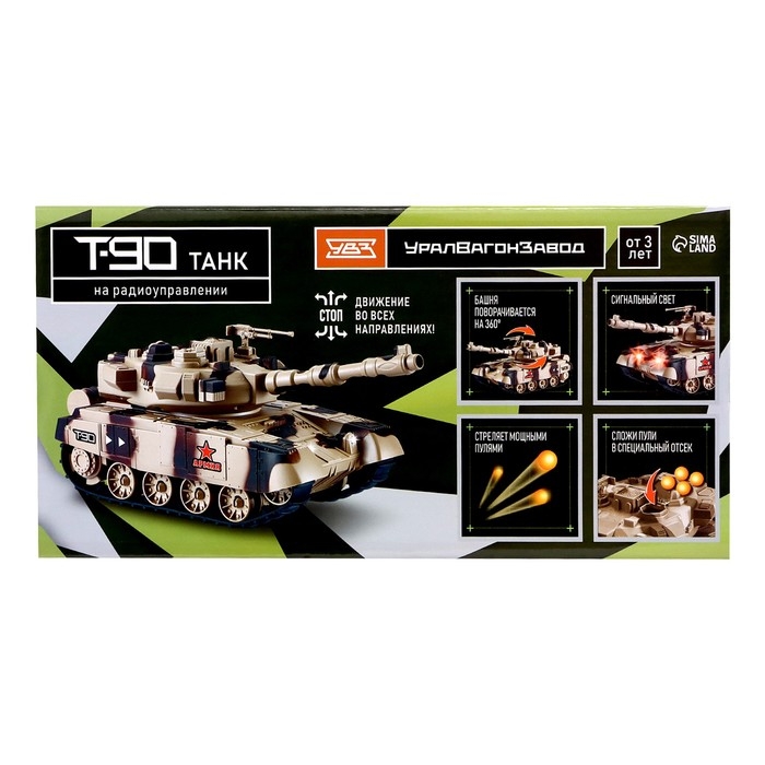 Радиоуправляемый танк Т-90 — боевая машина, которая впечатлит любителя военной техники своим реалистичным дизайном и функциональными характеристиками.
