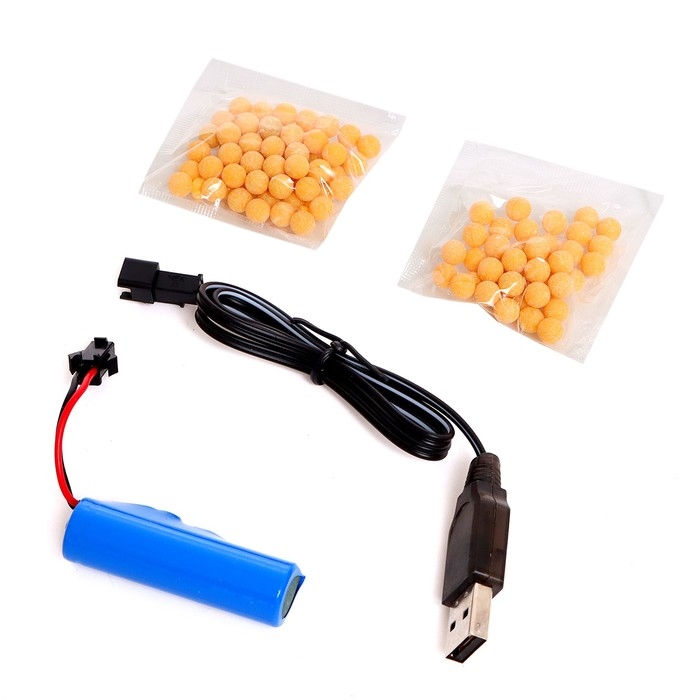 - Стреляет пластиковыми пульками 6 мм (в комплекте).