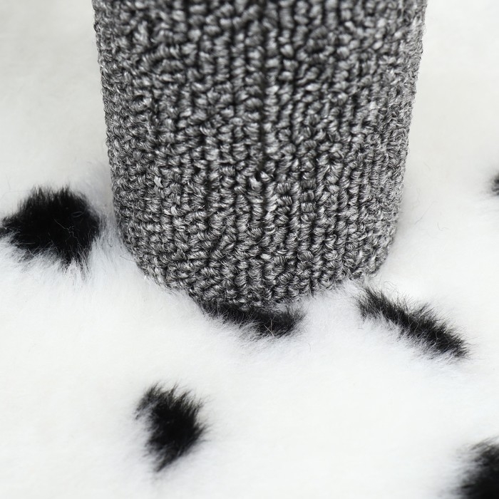 Покрытие из ковролина и джутовые столбики не только добавляют элемент роскоши, но и помогают удовлетворить естественную потребность кошек в заточке когтей, тем самым защищая вашу мебель от повреждений. Закрытый домик на нижнем уровне станет любимым местом для уединения и сна, а мягкая подстилка внутри обеспечит дополнительный комфорт.