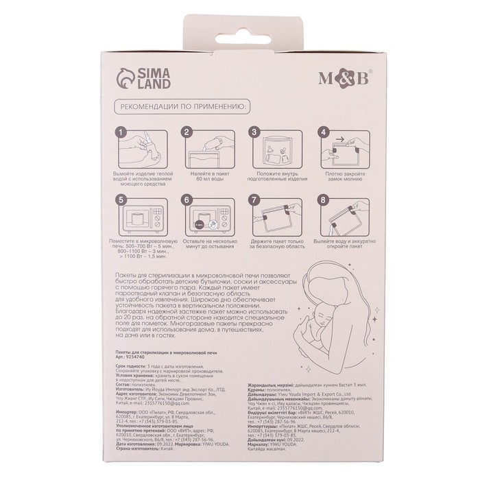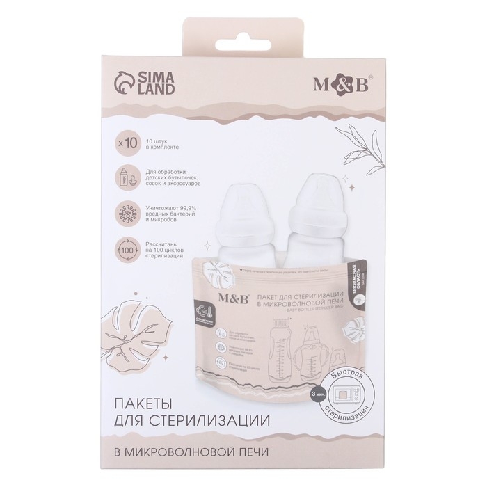 Пакеты для стерилизации бутылочек в микроволновой печи, набор 10 шт., Mum&Baby