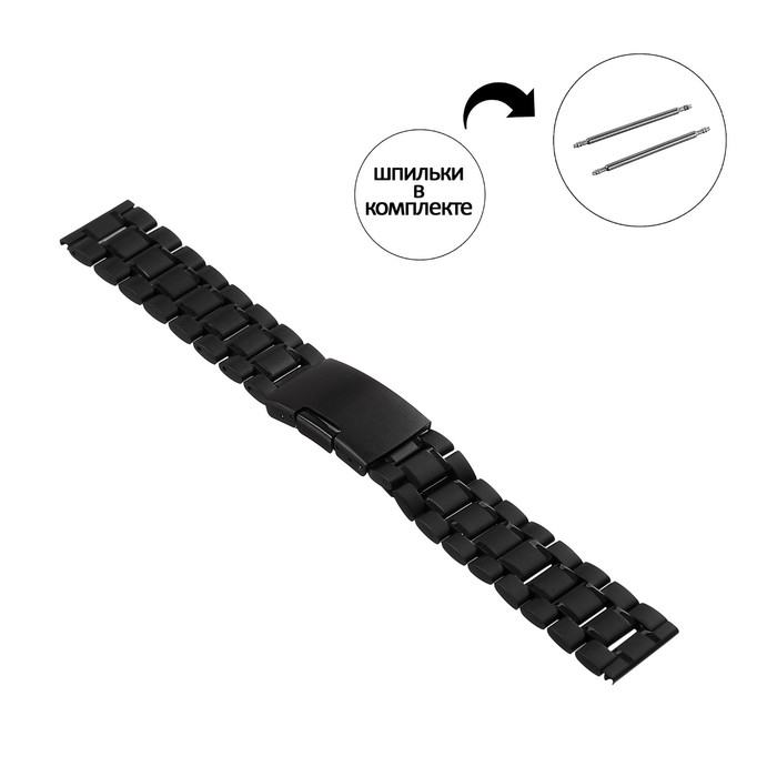 Ремешок для часов, 24 мм, l-17.3 см, шпиньки в комплекте, черный матовый