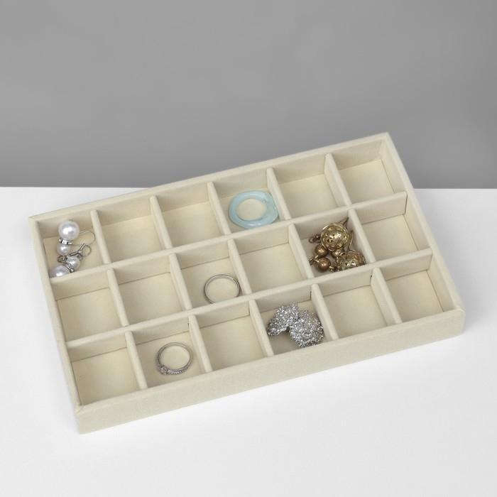 Подставка для украшения 18 ячеек, флок, 21×12,3×2,5 см, цвет бежевый