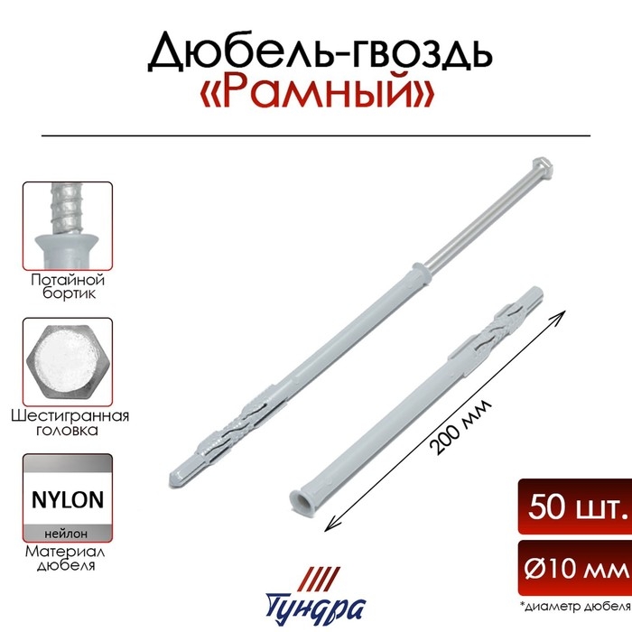 Дюбель-гвоздь "ТУНДРА" RDR, рамный, 10х200 мм, 50 шт