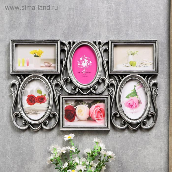 Фоторамка пластик на 6 фото 10х15 см "Стильная" серебро 50,5х31 см