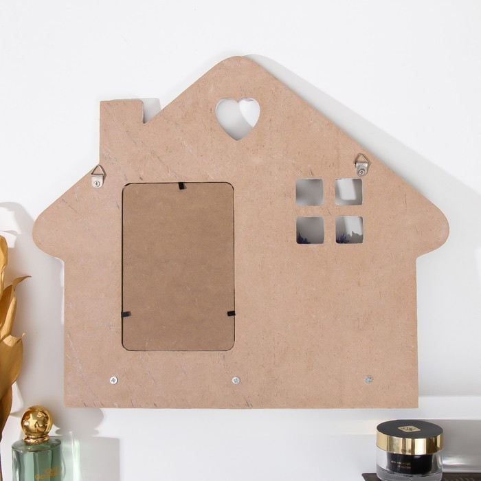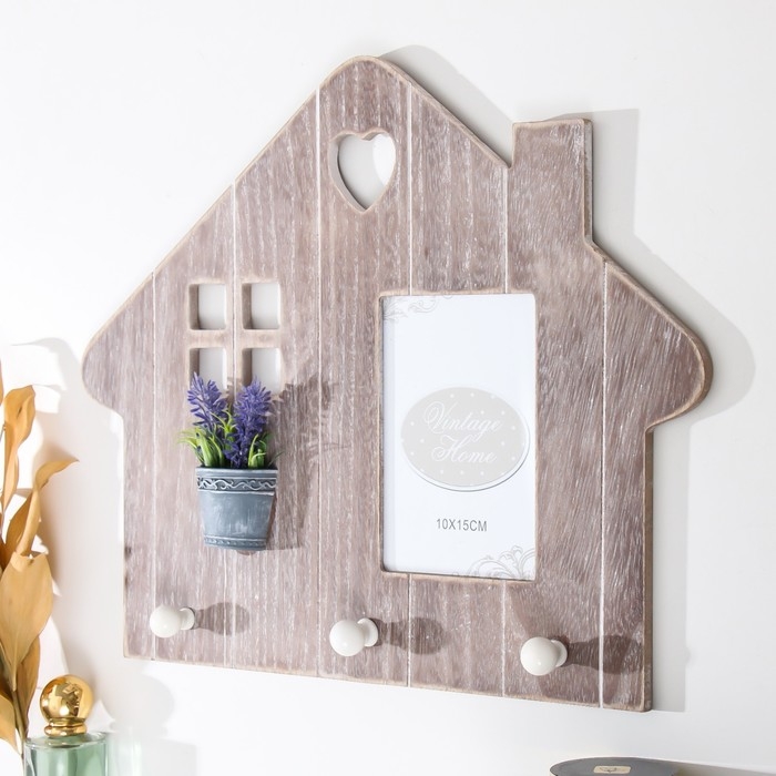 Крючки декоративные дерево+фоторамка 10х15 см "Домик с лавандой на окне" 38х0,9х32 см