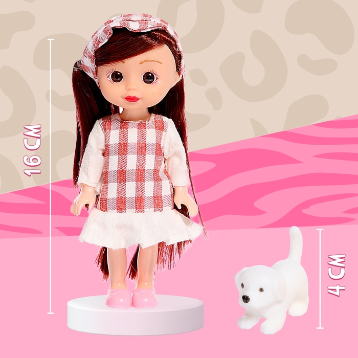 - Высота куклы — 16 см. Игрушка очень компактная, поэтому её удобно захватить с собой на прогулку, в гости и даже в путешествие!
