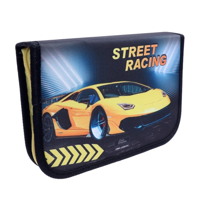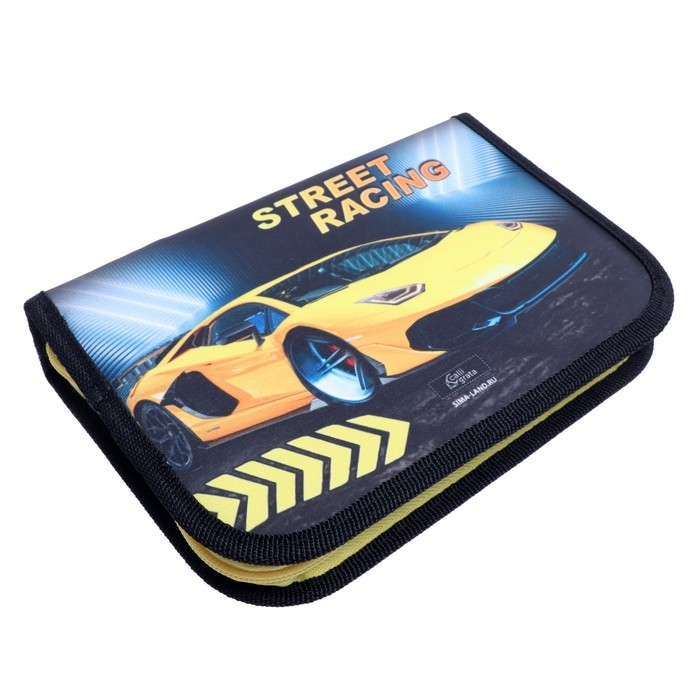 Пенал 3 секции, вкладка внутри, 140 х 210 х 40 мм, тканевый, Calligrata TOP Block "Тачка желтая"