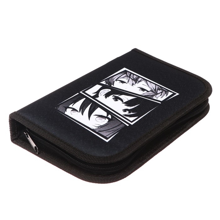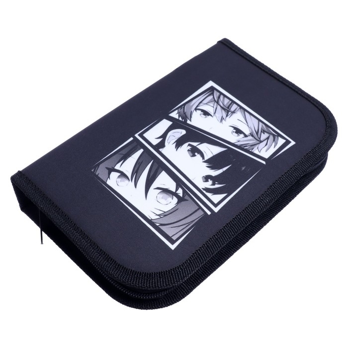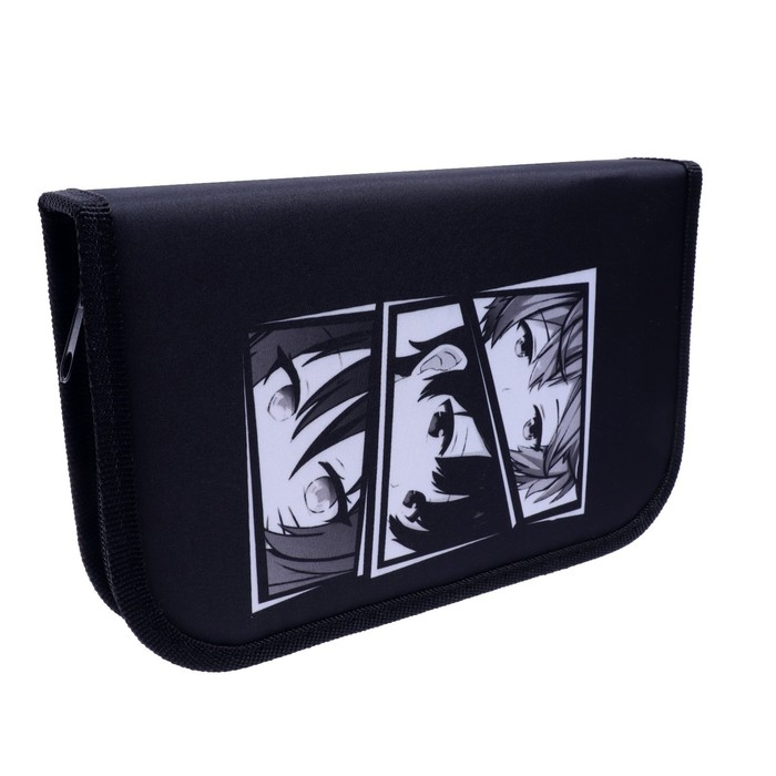 Пенал 1 секция, 130 х 210 х 40 мм, 2 откидные планки, тканевый, Calligrata TOP, Content "Аниме", МИКС