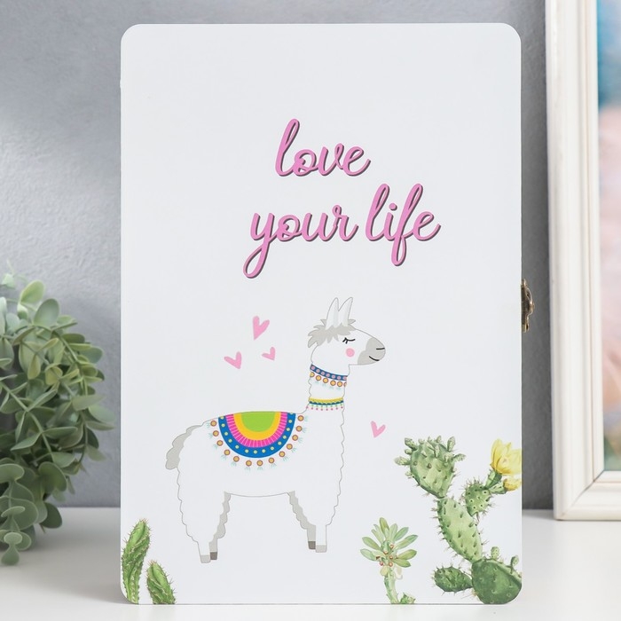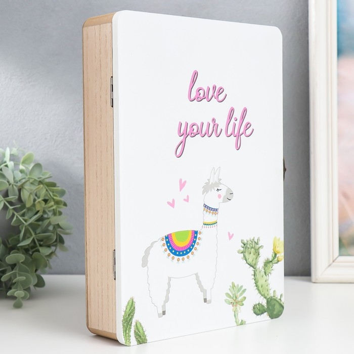 Ключница дерево 6 крючков "Лама и кактусы" 20х5,5х29 см