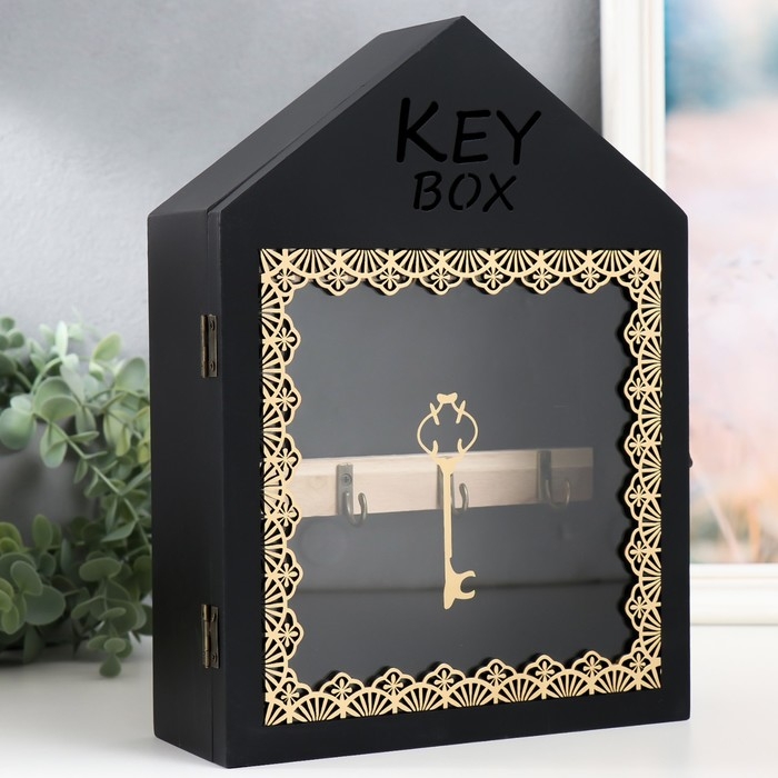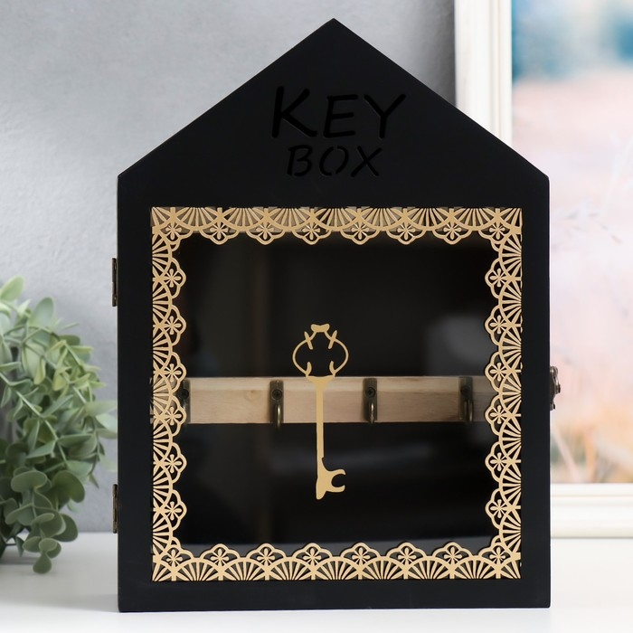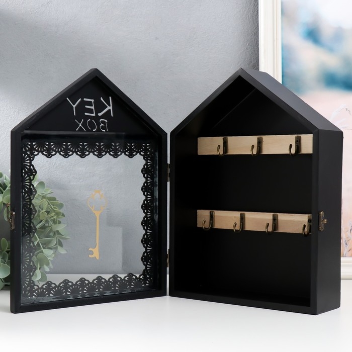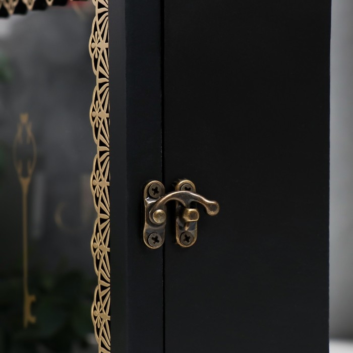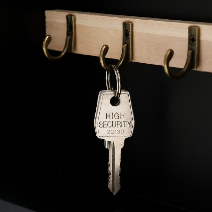 Ключница дерево 7 крючков "Дом. Узоры. Ключ" чёрная с золотом 22х8х30 см