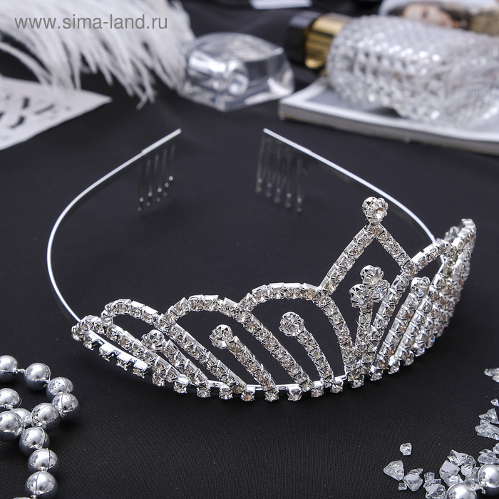 Диадема для волос "Изящество" капелька, 6 см, серебро
