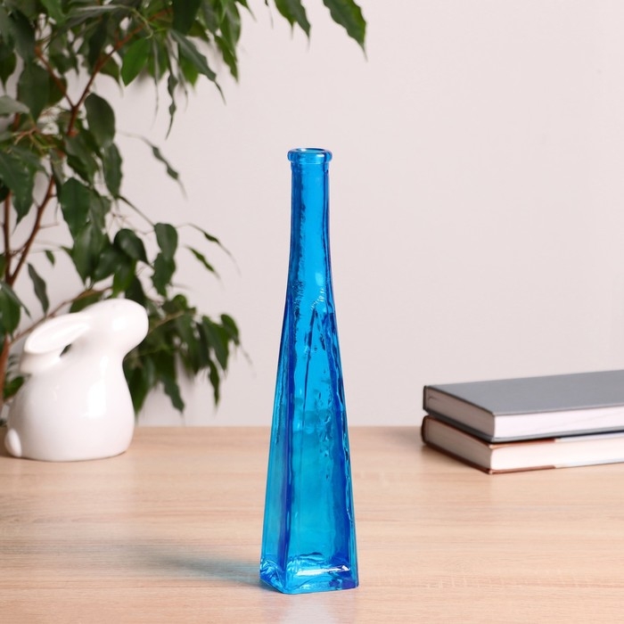 Ваза "Стрелка" четырехгранная, синяя диам.отверстия=2см, H=29х5,5см, V=0,2л