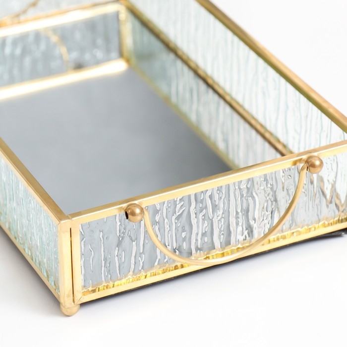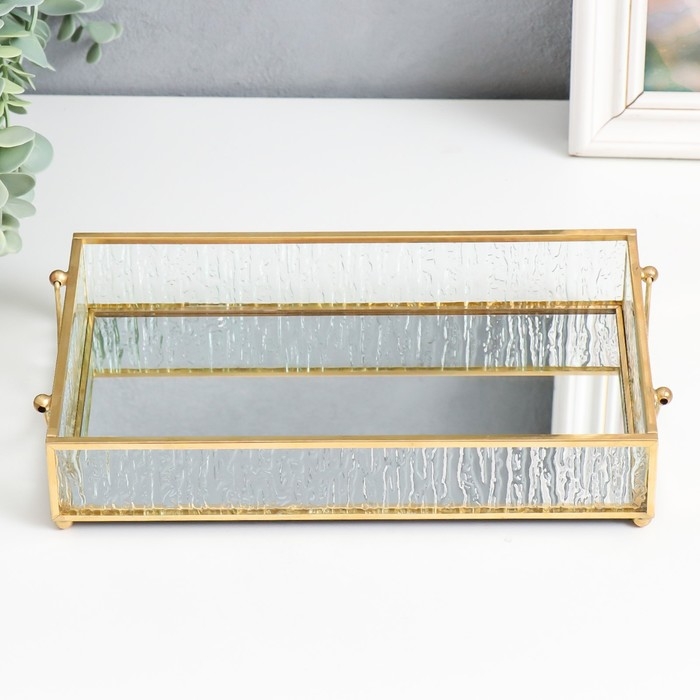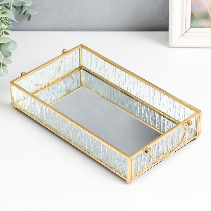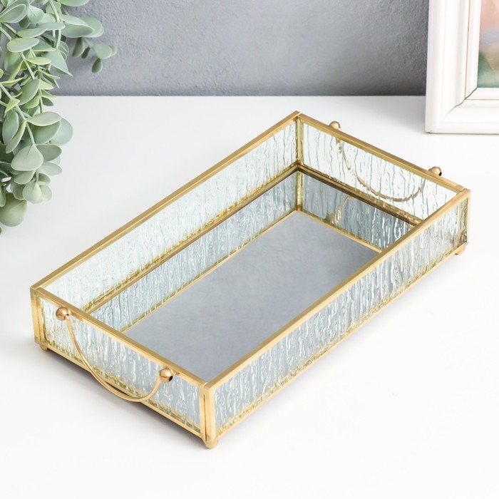 Подставка интерьерная стекло с зеркалом "Прямоугольник. Кора" с ручками 25,5х14х5 см