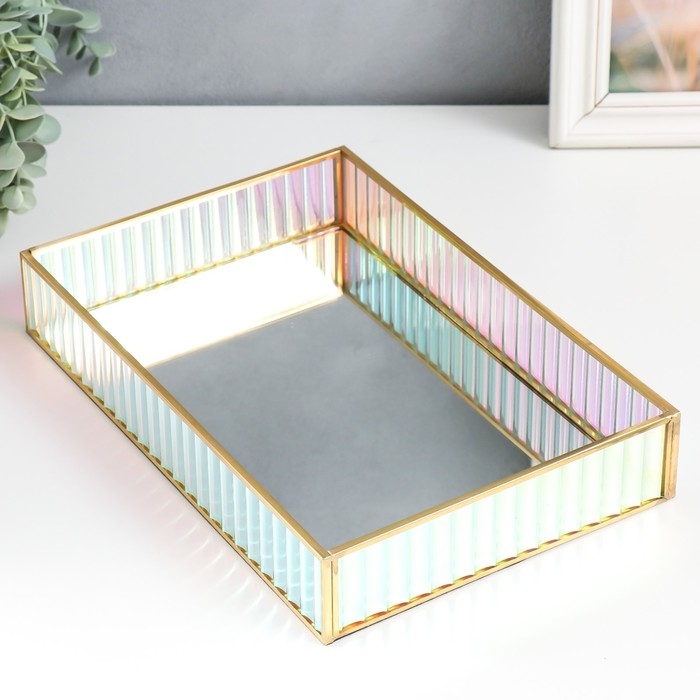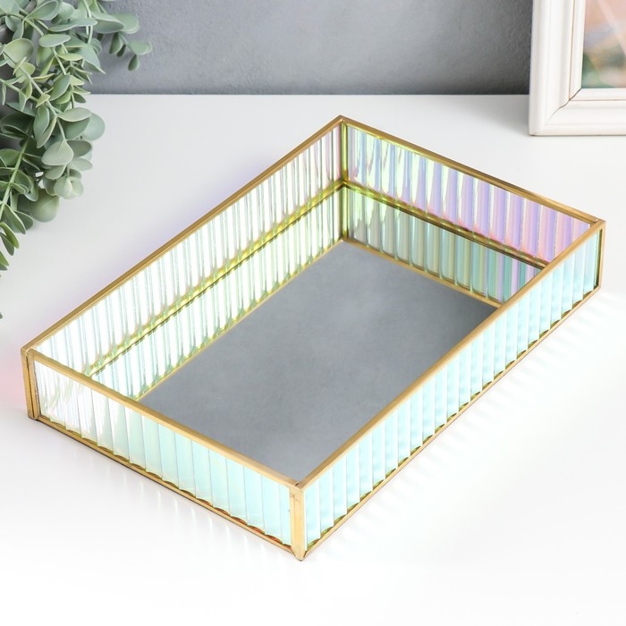 Подставка интерьерная стекло с зеркалом "Прямоугольник. Радужные полосы" 30х20х5 см