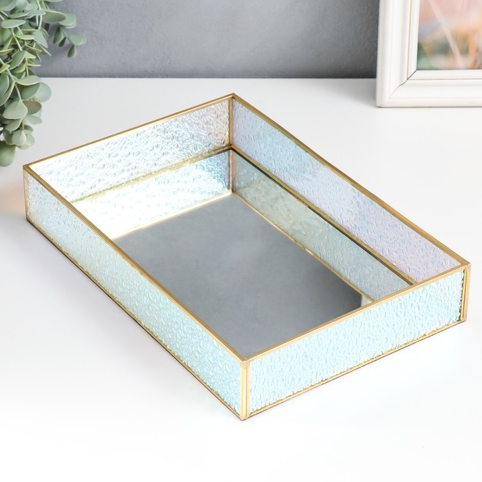 Подставка интерьерная стекло с зеркалом "Прямоугольник. Радужные капли" 30х20х5 см