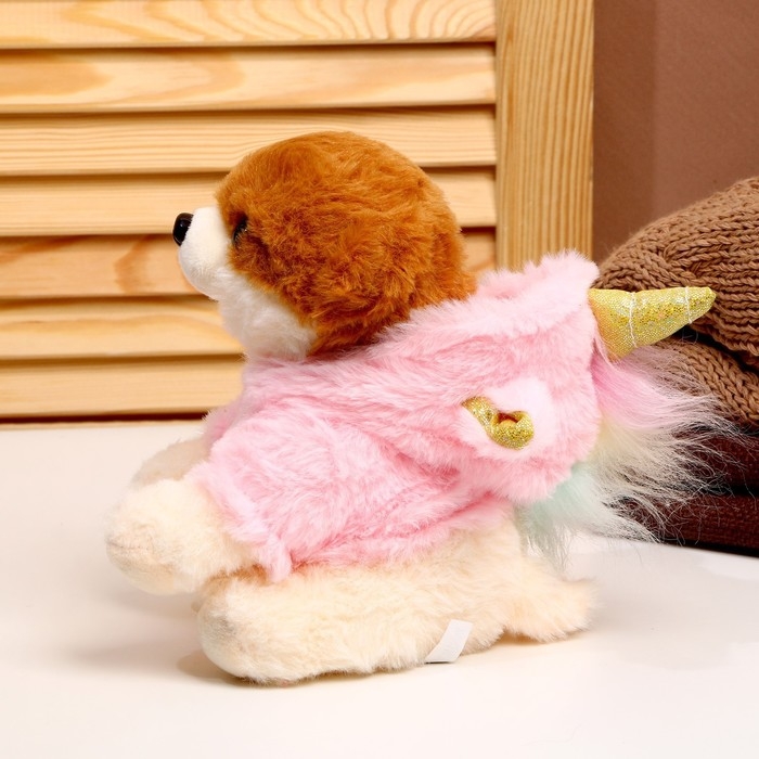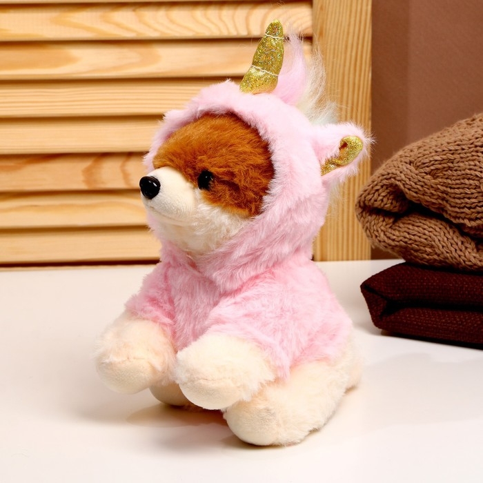 Мягкая игрушка «Собака», в костюме единорога, 18 см, цвет розовый