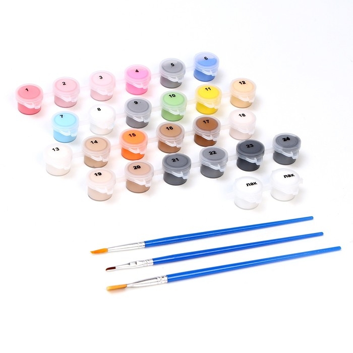 - В набор входят все необходимые оттенки красок. Баночки пронумерованы.