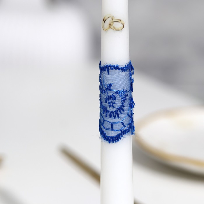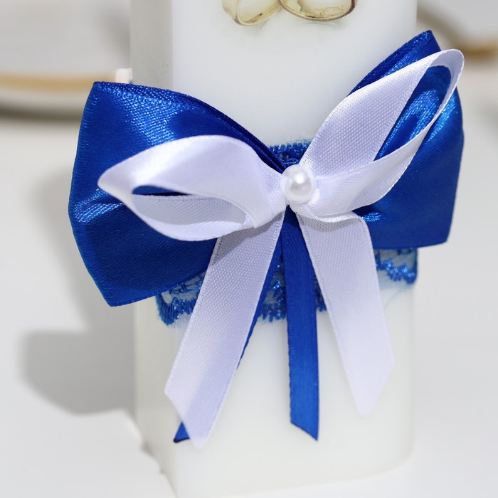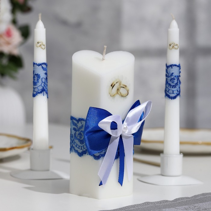 Набор свечей "Кружевной с бантиком" синий: домашний очаг 6,8х15см, родительские 1,8х17,5см