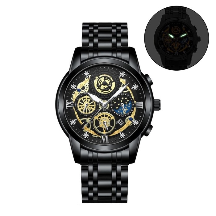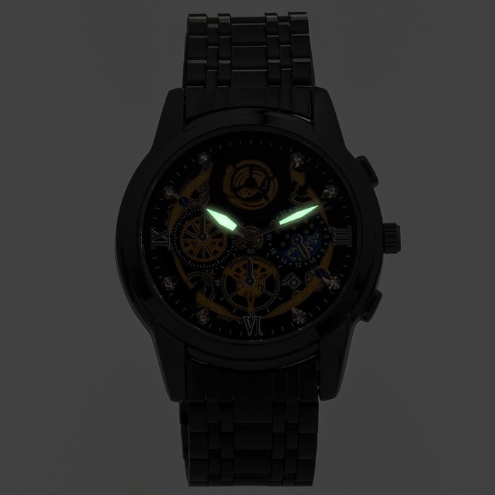 Часы наручные кварцевые мужские, d-4.2 см, ремешок l-26 см, 3 АТМ, светящиеся