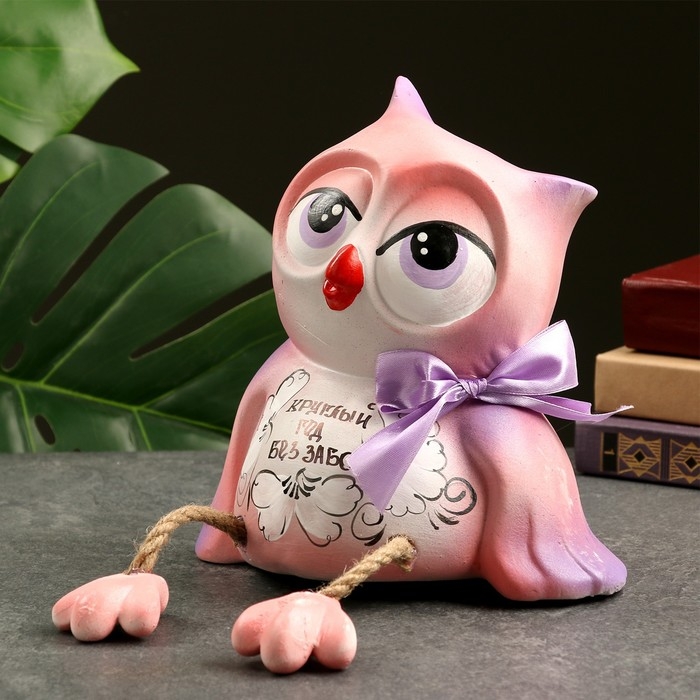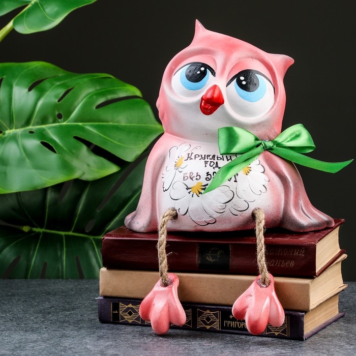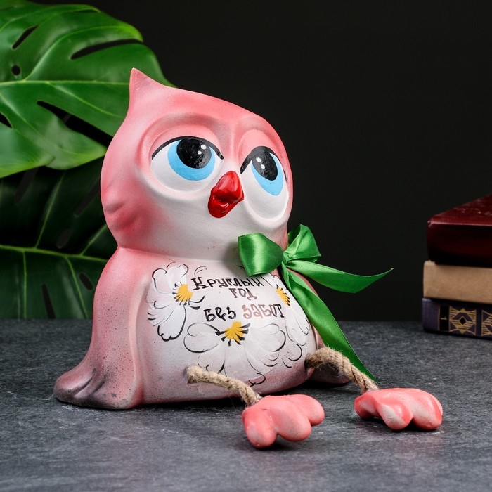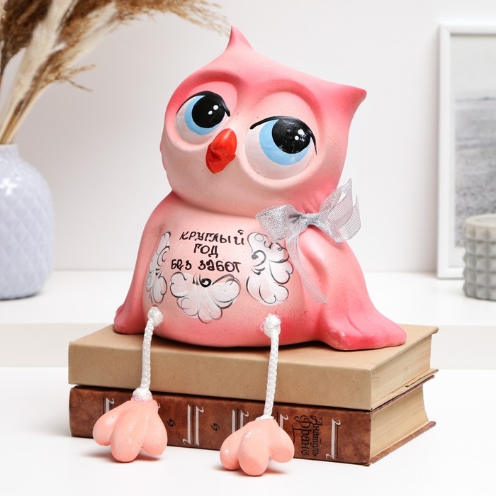 Копилка "Сова - Круглый год без забот" розовая, 20см