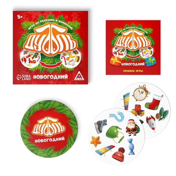 Новогодняя настольная игра «Новый год: Дуббль», в подарочной коробке на магнитах, 55 карт, 5+